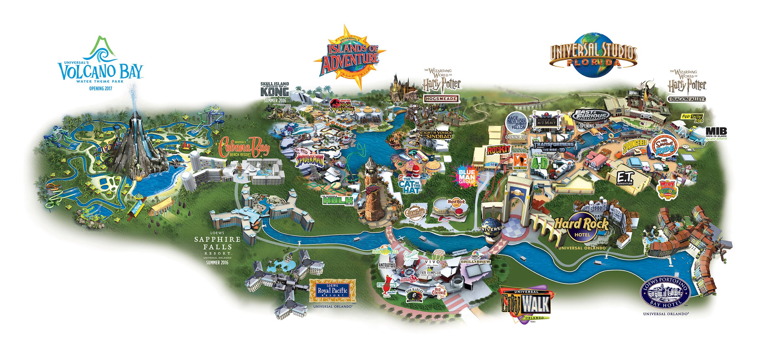 | Mapa ogólna 3 parków w kompleksie Universal Studios Orlando na Florydzie. My byliśmy tylko w 2ch. |